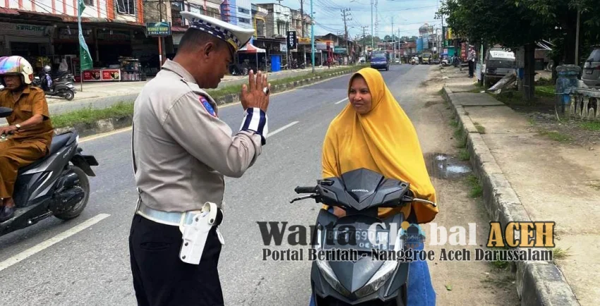 ACEH TIMUR.Wartaglobal.Id |Saat melaksanakan kegiatan penjagaan dan pengaturan lalu lintas (Gaturlantas) pagi hari, KBO Satlantas Polres Aceh Timur, Polda Aceh Iptu Bustamam dan anggotanya memberikan imbauan kepada masyarakat terkait pentingnya keselamatan dalam berkendara. Dalam kesempatan tersebut, Iptu Bustamam mendapati warga yang tidak menggunakan helm saat mengendarai sepeda motor bahkan terdapat anak di bawah umur mengendarai sepeda motor dan berboncengan.
