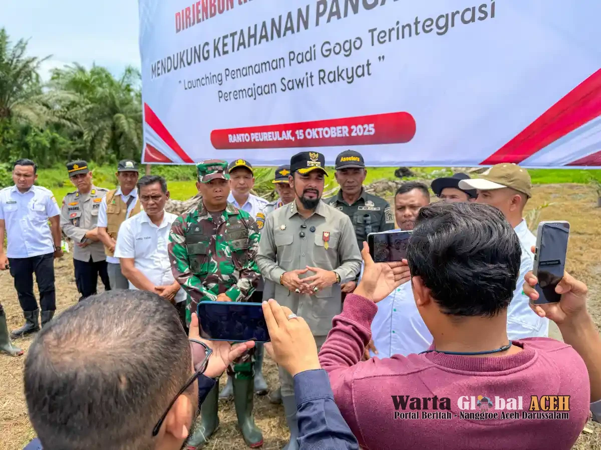 Aceh Timur.Wartaglobal.Id |Bupati Aceh Timur Iskandar Usman Al'farlky secara resmi melakukan launching penanaman Padi Gogo di lahan perkebunan sawit milik rakyat.Rabu (15/10/2025) di Desa Seumanah Jaya, Kecamatan Ranto Peureulak, kabupaten Aceh Timur.