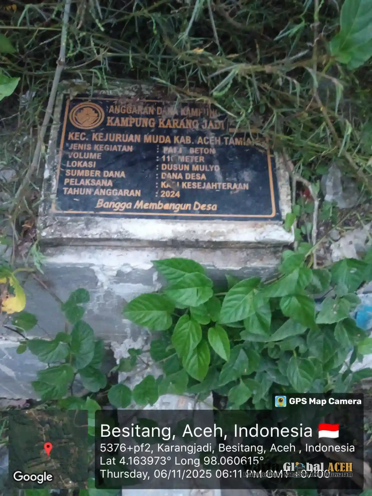 Berdasarkan informasi laporan masyarakat kepada wartaglobal.id, ada tanah warga setempat yang menjadi korban dugaan penyerobotan dari dampak pembangunan harum dan kental adanya penyampaian masarakat kepada awak media, warga yang tidak mau di sebutkan namanya mengatakan tanah saya terpakai lebar 1 meter sepanjang 28 meter dengan di janjikan di rabat beton jalan masuk ke rumah nya, namun janji kepala desa kampung setempat tak kunjung menepati janjinya untuk membangun rabat beton jalan masuk rumah nya atau ke bagasi mobil nya.