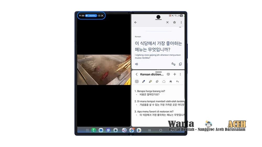Saat sedang belajar bahasa asing, kamu bisa membuka aplikasi pembelajaran, sambil di sisi lainnya mencatat kosa kata baru di Samsung Notes, dan menerjemahkan kalimat dengan aplikasi di sisi satunya.