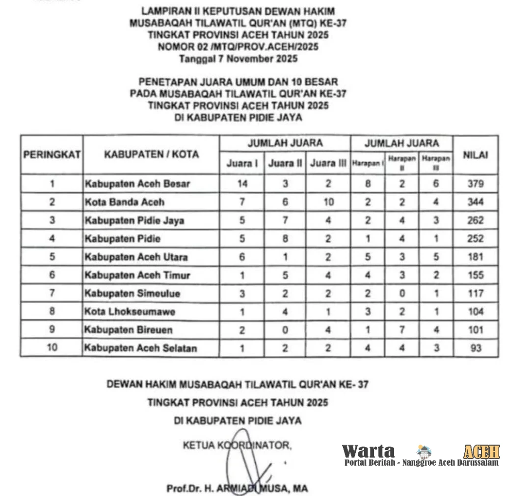Ia menambahkan, keberhasilan ini menunjukkan peningkatan kualitas kafilah Aceh Timur pada ajang MTQ tingkat provinsi Aceh