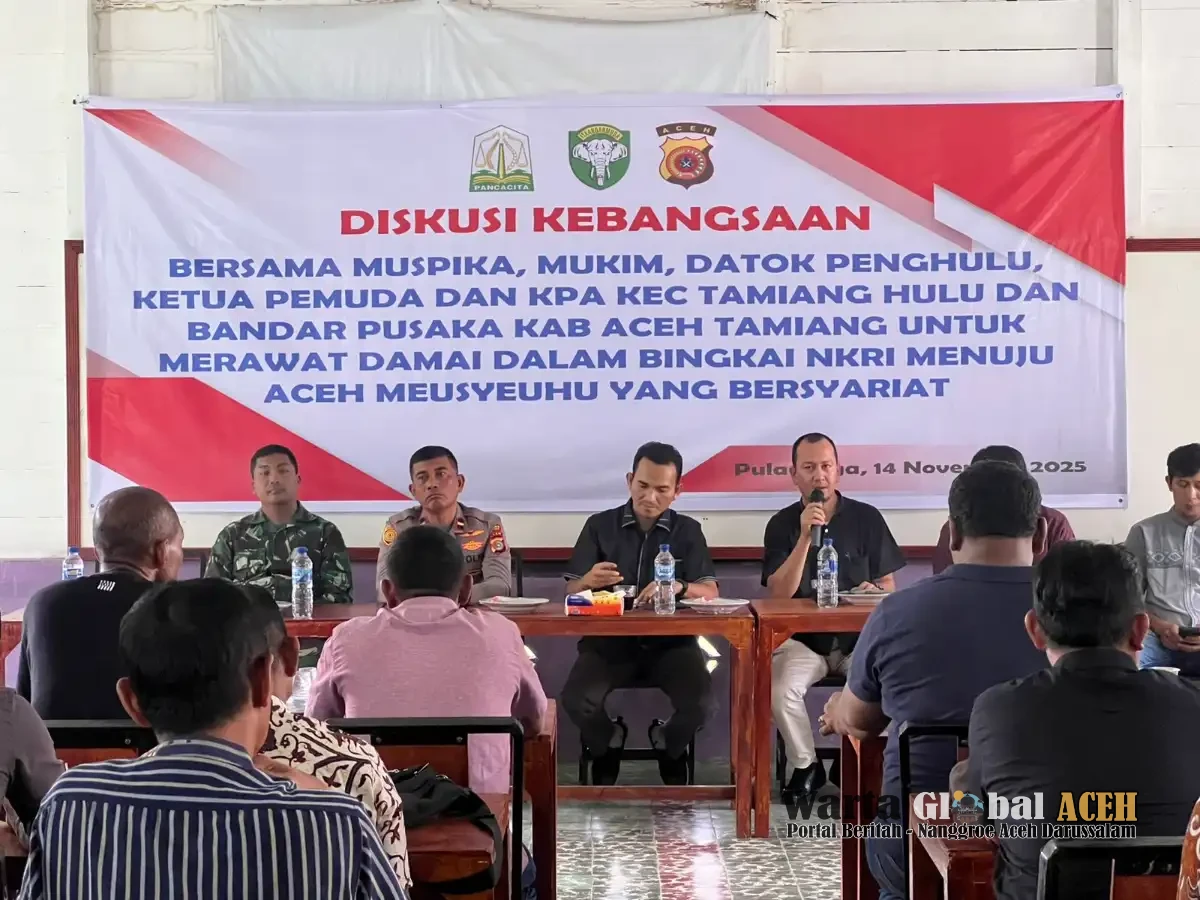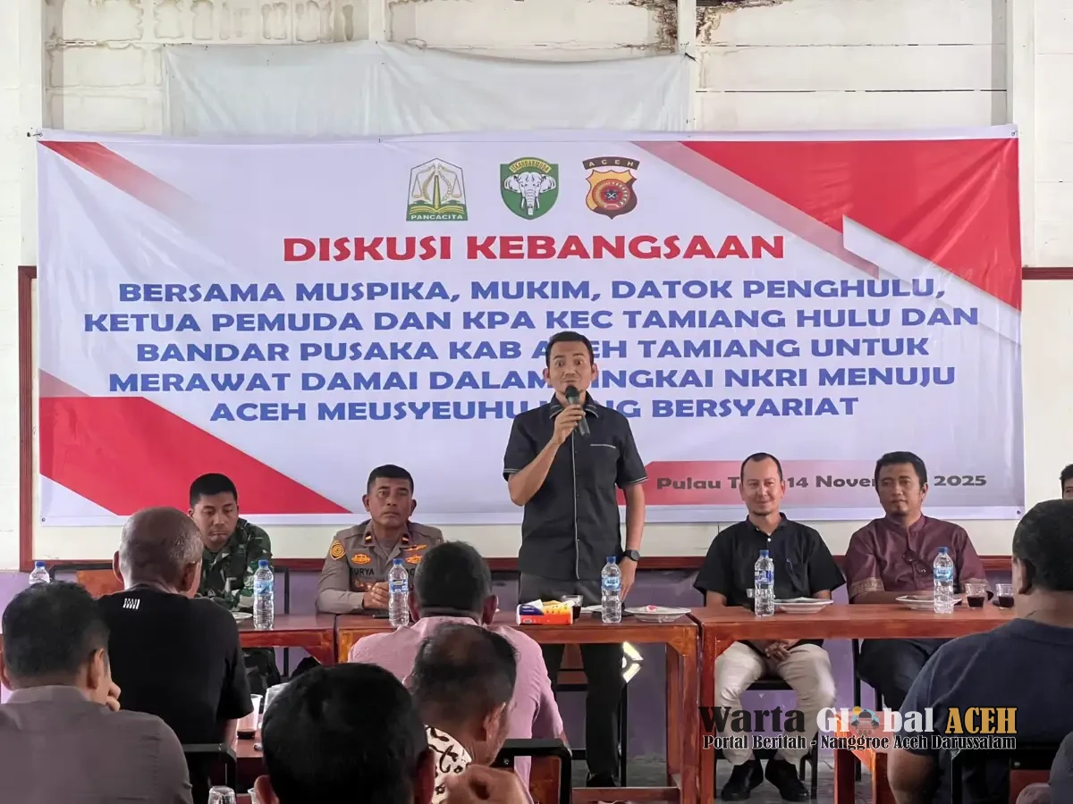 Di ketahui acara berlangsung Jumat tanggal 14 November 2025 sekira pukul 14.30. Wib bertempat di Aula Learning Center Desa Perkebunan Pulau Tiga Kecamatan Tamiang Hulu Kab Aceh Tamiang telah dilaksanakan kegiatan Diskusi Kebangsaan bersama untuk merawat damai dalam bingkai NKRI menuju Aceh meusyeuhu yang bersyariat.