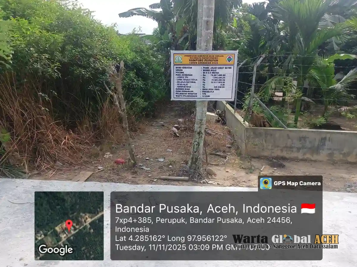 Di lokasi pembangunan Rabat Beton tepatnya di Dusun Maju, kampung Perupuk kecamatan bandar Pusaka, Kabupaten Aceh Tamiang.