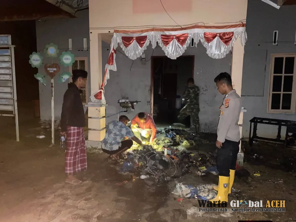 Ada pula yang terbakar berupa pasokan bahan pokok makanan atau bantuan sembako korban banjir bandang kabupaten Aceh Tamiang.