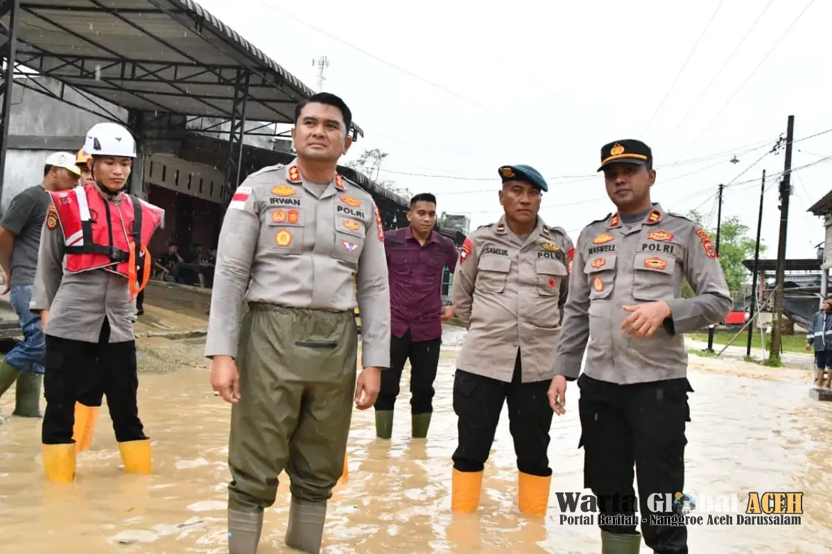 Aceh Timur.Wartaglobal.Id |Sejumlah wilayah di Kabupaten Aceh Timur kembali diguyur hujan. Akibatnya, sejumlah gampong terendam air. Kejadian ini menjadi perhatian serius Kapolres Aceh Timur, AKBP Irwan Kurniadi, S.I.K. dengan memantau langsung wilayah terdampak, salahsatunya di Gampong Alue Ie Mirah, Kecamatan Indra Makmur. Kamis, (08/01/2026)