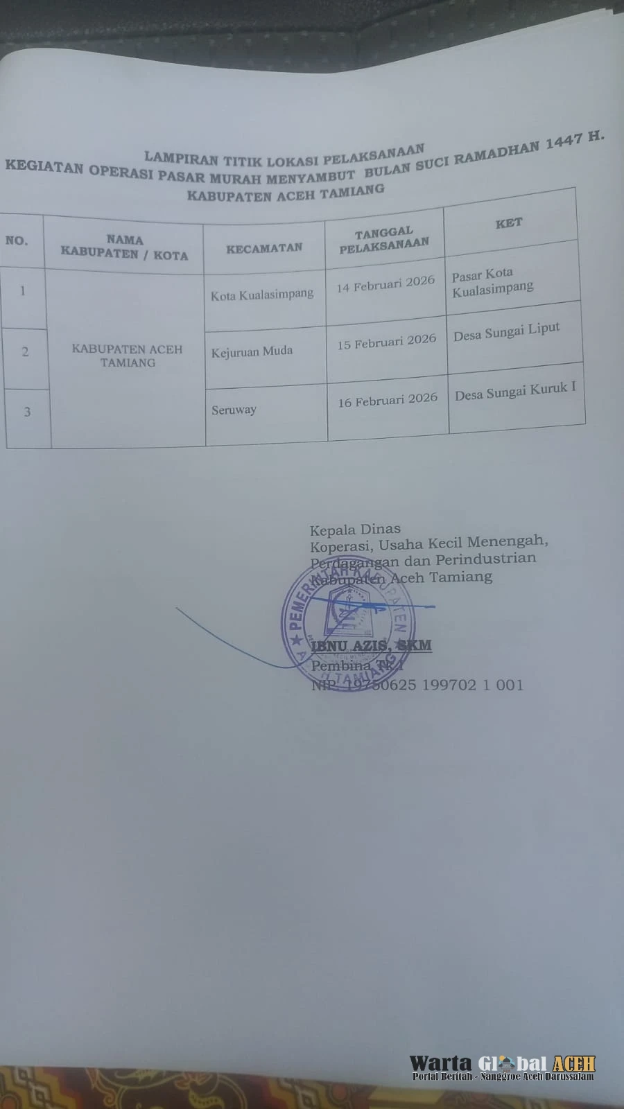 "Pasar murah ini adalah perintah Gubernur Aceh agar pemerintah hadir langsung meringankan beban warga. Kita ingin memastikan bahwa meski pascabencana, stok pangan aman dan harganya tetap stabil menyongsong bulan puasa," ujar Kepala Dinas Perindustrian dan Perdagangan (Disperindag) Aceh Tamiang, Ibnu Azis, Skm dalam keterangannya di Aceh Tamiang, jum'at, 13 Februari 2026.