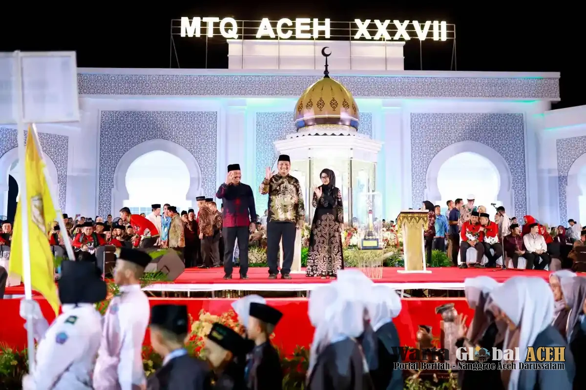 Gubernur Aceh, H. Muzakir Manaf saat membuka perhelatan akbar MTQ Aceh ke-37 malam tadi menegaska, pelaksanaan MTQ bukan sekadar ajang memperdengarkan lantunan ayat suci Al-Qur’an yang merdu, melainkan momentum untuk memahami dan mengamalkan nilai-nilai yang terkandung di dalamnya. Ia menekankan bahwa Al-Qur’an adalah petunjuk hidup yang mampu menyelamatkan manusia di dunia dan di akhirat.