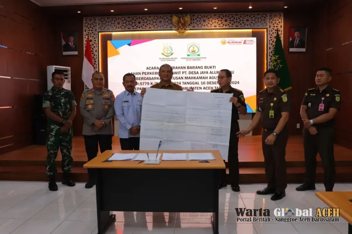 “Berdasarkan putusan Mahkamah Agung, lahan perkebunan kelapa sawit yang sebelumnya dikuasai oleh PT Desa Jaya Alur Jambu sejak tahun 1988 dan telah habis masa HGU-nya, dinyatakan dikembalikan kepada negara melalui Pemerintah Kabupaten Aceh Tamiang,” tegas Kajari Yudhi.