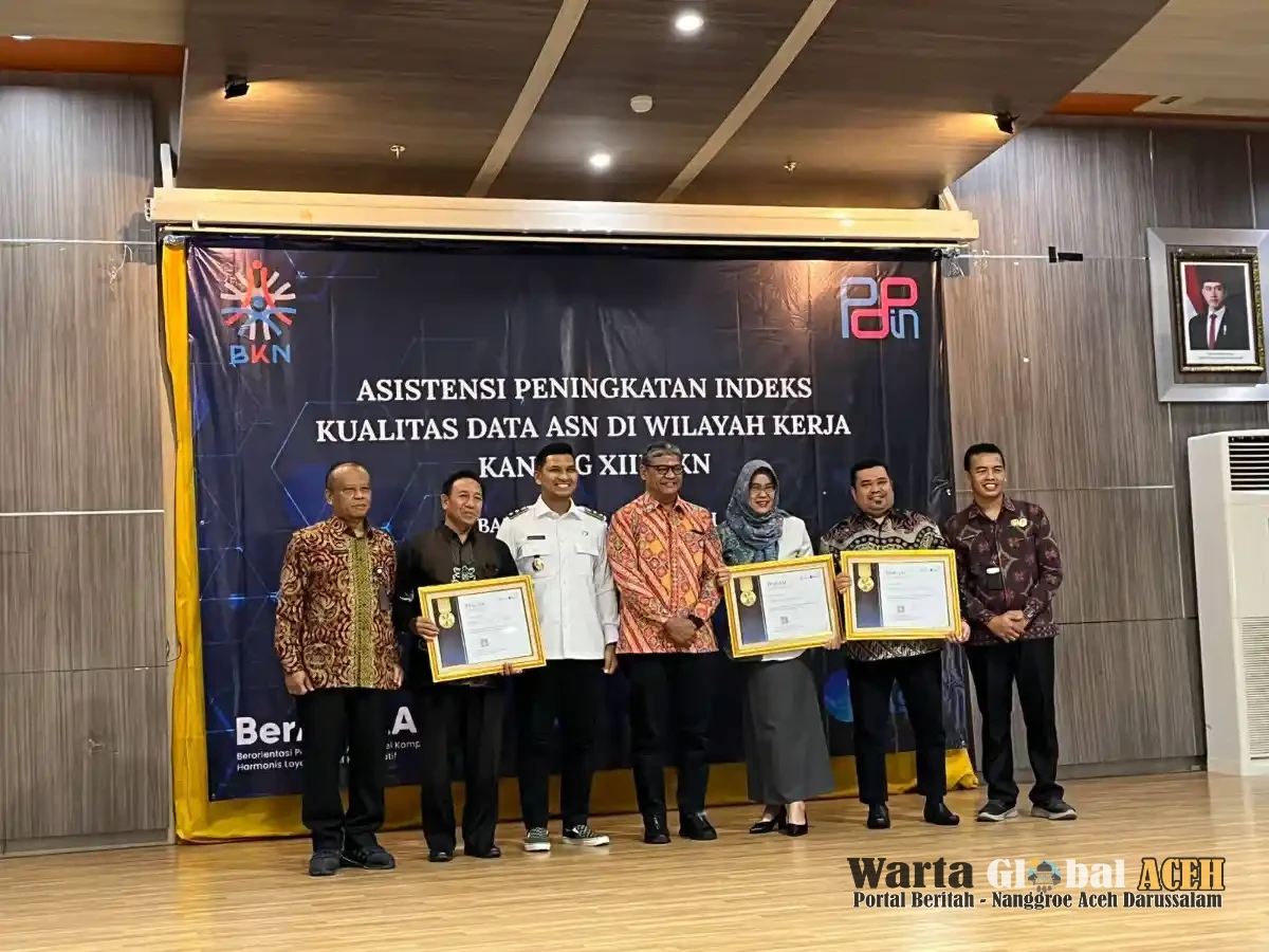 Penghargaan ini diserahkan langsung oleh Deputi Bidang Sistem Informasi dan Digitalisasi Manajemen ASN BKN, Suharmen, S.Kom, M.Si, dalam acara Asistensi Peningkatan Indeks Kualitas Data ASN yang berlangsung di Aula Balai Kota Banda Aceh pada Rabu (29/10/25).