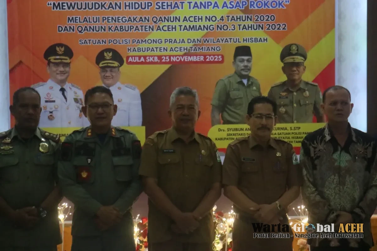 Aceh Tamiang - Pemerintah Kabupaten Aceh Tamiang melalui Satuan Polisi Pamong Praja dan Wilayatul Hisbah menggelar Sosialisasi Kawasan Tanpa Rokok (KTR) di Gedung SKB Karang Baru, Selasa (25/11/25). Kegiatan dibuka secara resmi oleh Plt. Asisten Perekonomian dan Pembangunan Setdakab, Drs. Maddiah, M.Pd, mewakili Bupati Aceh Tamiang.