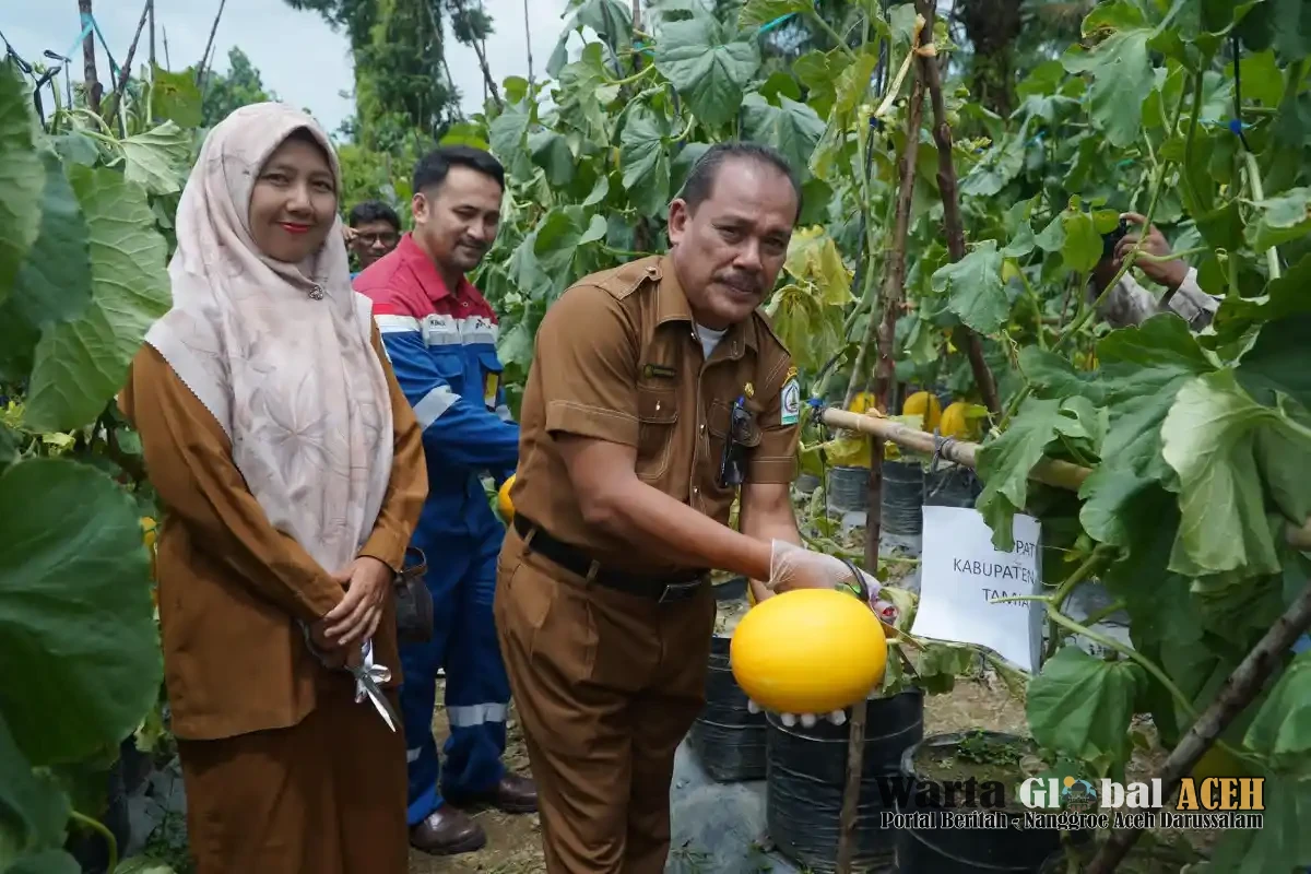 Aceh Tamiang - Mewakili Bupati, Plt. Sekretaris Daerah Kabupaten Aceh Tamiang, Drs. Syuibun Anwar melaunching program CSR smart farming dan panen raya melon golden di Desa Kebun Tanjung Seumantoh, Karang Baru, Selasa, (7/10/25).
