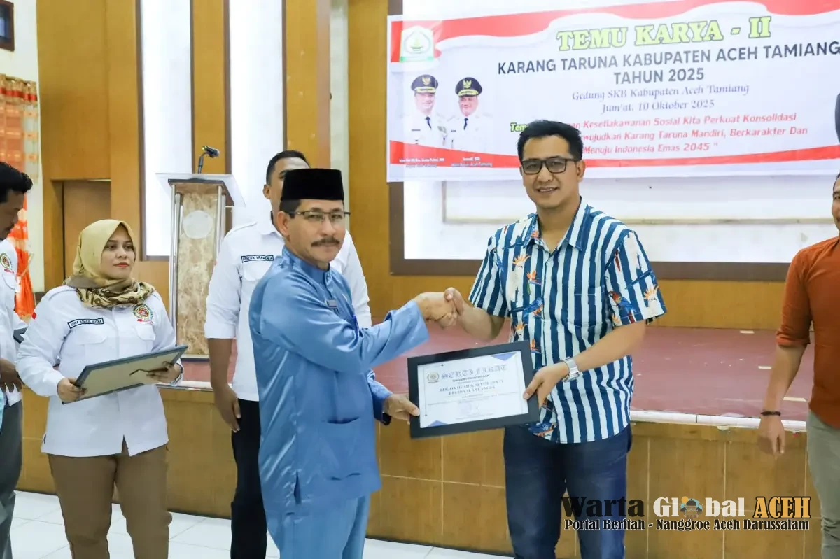 Aceh Tamiang – Prokopim: Mewakili Bupati Aceh Tamiang, Asisten Perekonomian dan Pembangunan, Drs. Maddiah, M.Pd menghadiri kegiatan Temu Karya Karang Taruna II Kabupaten Aceh Tamiang Tahun 2025. Acara berlangsung di Aula SKB Karang Baru, Selasa (10/10/25).