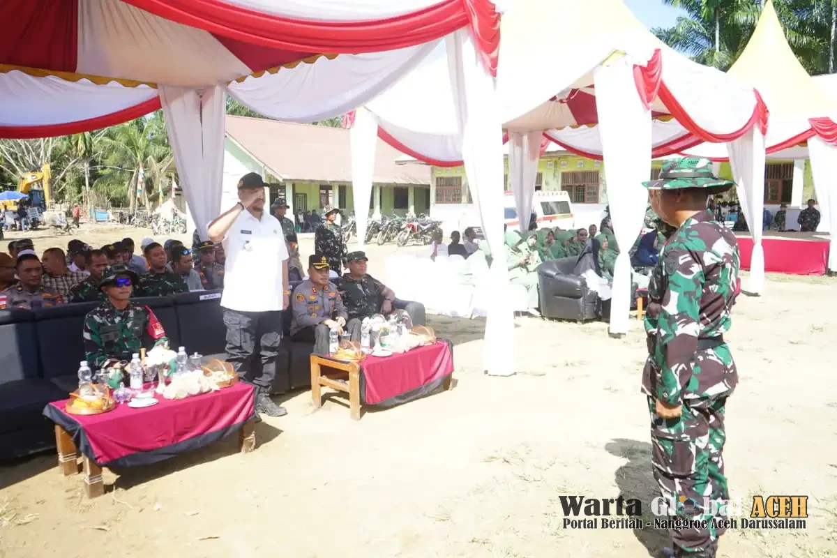 Aceh Tamiang -Upacara pembukaan program TNI Manunggal Membangun Desa (TMMD) Ke-128 Tahun 2026, Kodim 0117/Aceh Tamiang berlangsung hidmat, dengan mengusung tema ” TMMD Satukan Langkah, Membangun Negeri Dari Desa".
